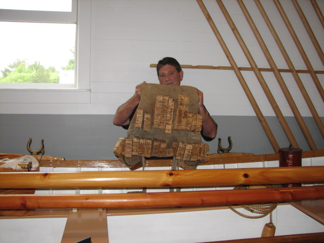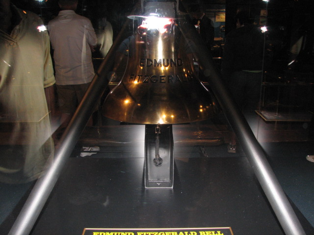 We tied up, went ashore, and headed to the Shickwreck Museum where the bell for the Edmund Fitzgerald is. It is a really good museum and we learned a lot. There was a replica of a rescue boat from the turn of the century and it was unbelievable that men would actually (for $1.00 a day) row out in this open dory (eight men plus the captain) and try to rescue people. They had lifejackets made of cloth with pieces of cork sewed into the back – apparently you could float for a week (of course you’d be dead in a few minutes from the excruciating cold). Anyway, it was well worth the price of admission.