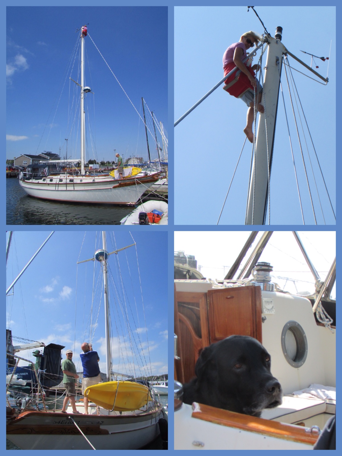 These pictures are of Kim at the top of the mast and Dennis and John at the bottom shouting their opinions about how the mast should be fixed. Hudson, the dog, was not amused.