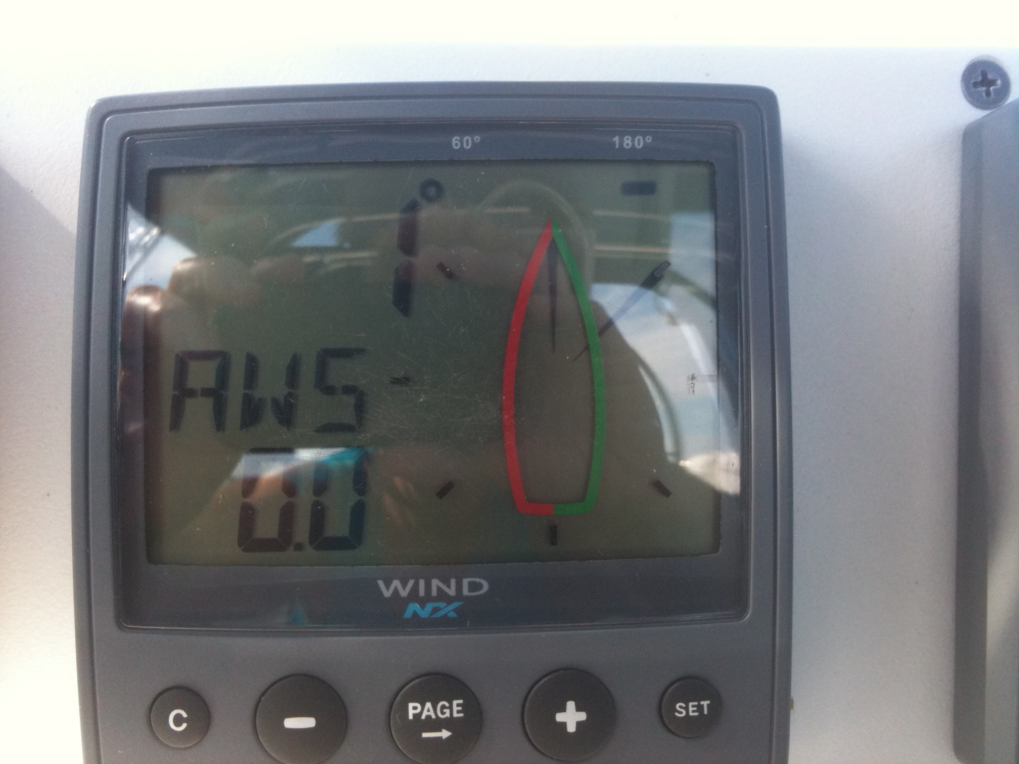 After we finished installing the wind instrument, we had to fish the wire through the boat and this actually proved to be the more difficult task as it took forever to push the wire through all the little nooks and crannies to get it to the right place. Finally, that was done and then we discovered that we were missing a little tiny piece of plastic that gives it power. This little piece might be at home. At any rate, we don’t have it so we still don’t know the speed of the wind!