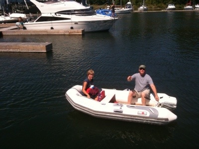 At the holding dock, we met up with Goban, this was a 40 foot Hughes from the 1970s. The couple that owned it had just bought it in Sarnia three weeks ago. They were having quite a time with the boat. It was well built, much heavier than ours, but had been in the charter business in the Caribbean for years. The owner was 94 years old and helped Michel get the boat ready. Michel was so worried about him because they were working in the extreme heat (35 degrees!) for hours, but the man seemed ok. The boat had seen better days though. Nothing worked on it! No running water, no refrigeration, the dodger and bimini leaked in the rain, most of the gauges did not work, the sails were old and worn out.