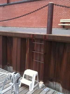 Finally, here is a picture of the Split Crow all safely tied up. Notice who is swimming in the canal!