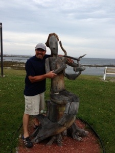 We also spotted Les Îles-de-la-Madeleine and thought that we would be there right on time. No such luck! In order to get to the marina, it was another 20 miles. We followed a sand dune forever, then went down an extremely long channel. We didn’t dare take any shortcuts because of the sandbars. Somewhere along the channel, Dennis noticed that the engine was vibrating in an odd way. This could not be good. So, we fretted over this for a couple of hours and he checked things out but couldn’t really tell. He knew though, that there was something wrong with the engine – maybe the prop had caught a fishing net? He realized that we needed reverse to work if we wanted to get safely to the marina and thought that he had better try it out in the open. He was thinking that he would have to dive down on the prop and cut the tangled debris. So, we went in reverse and a long piece of seaweed suddenly appeared on the stern of the boat. He then put the boat in forward and the vibration disappeared! Whew! Of course, he is going to dive down today and double-check but at least he won’t have to dive in 20 knot winds!