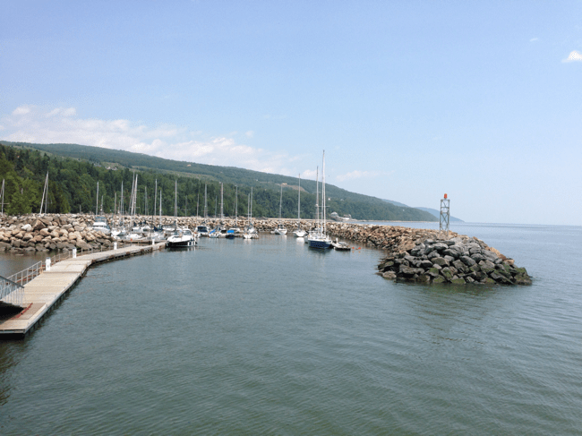 We made such good time that we were way too early to go into Matane – you cannot access the marina during low tide. Dennis called the harbourmaster and he told us to wait for an hour, so we went back to the commercial harbour and toured it. (Not too exciting but we had an hour to kill).