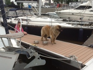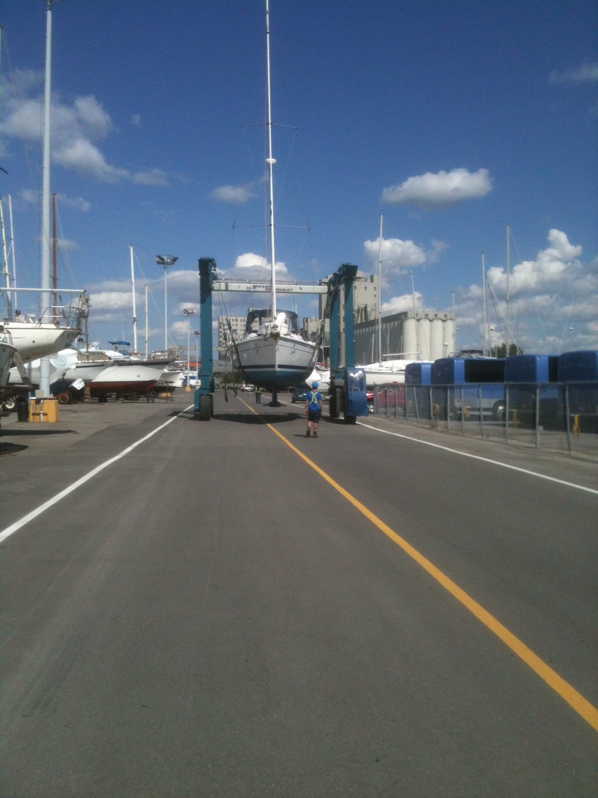 The boat went into the water on Wednesday – there weren’t too many glitches apparently except that Dennis had to dock it by himself. I can’t imagine! When did successfully dock, there were no services (electricity and water) so he was quite disappointed about that and tried to bargain a better deal. No go – I guess his charms don’t work in Quebec – he couldn’t even get a bag of ice! I said that he should be wearing his beret!