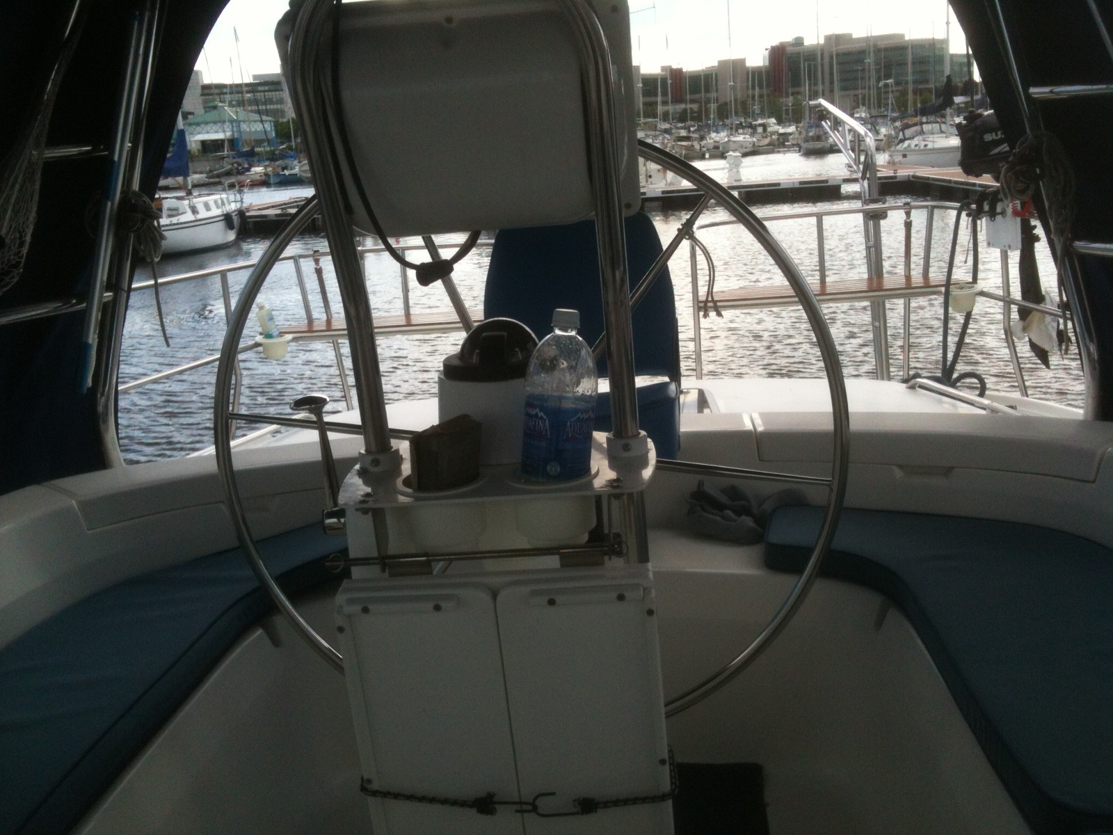 He also installed cockpit doors. Last year in Picton when we met the couple who had the exact boat as us, they had cockpit doors whereas we had nothing on the cockpit entrance except for the original boards. This is fine except when you want to actually go in and out of the boat – you either have to remove them or hoist yourself over them and climb in and out the boat. So, what everyone usually does, is leave the boards off until nighttime when the mosquitoes come out and then once they’re inside, you put the boards in. So, I am very hopeful that this new system will be better!