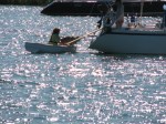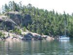 We went in through the back way this time and made a mistake interpreting the GPS – it looks like when you have the quarter mile scale on the GPS, it is not too accurate! Luckily, we were going very slowly and backed out before hitting anything. Also, these people driving by in their dinghy waved and pointed us in the right direction as well as calling us on Channel 16.