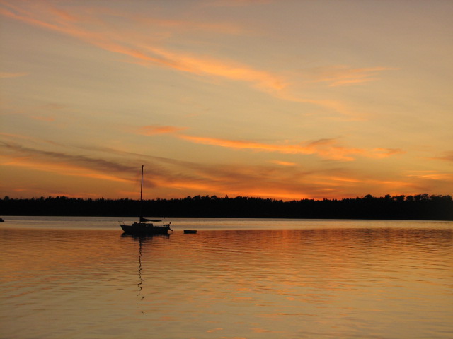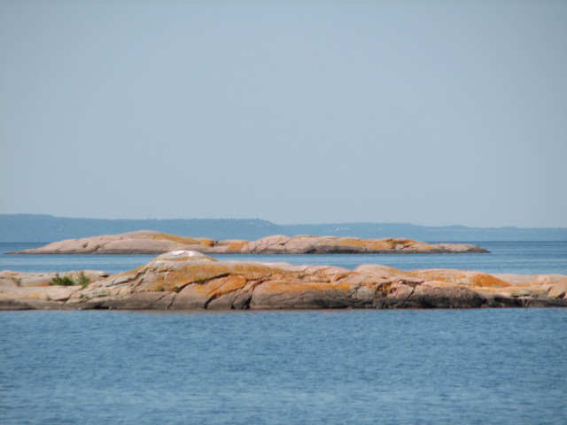We left at 11:00 this morning and headed over to John Island – there wasn’t even a breeze! We had plenty of company though and another herd of small annoying insects followed us over. They didn’t live very long, just long enough to make a mess all over the outside of the boat! Luckily though, Dennis cleaned everything off fairly quickly with buckets of water and a rag. I did find a really interesting bug sitting on the hatch. I am not sure what it is – none of my books have it listed. I hope it isn’t the last of its kind because it disappeared after I took its picture!