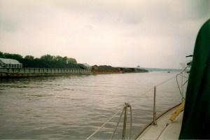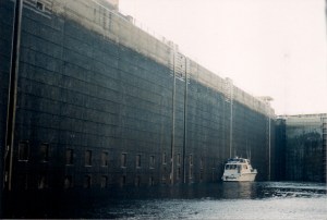 Inside a lock on the Illinois River