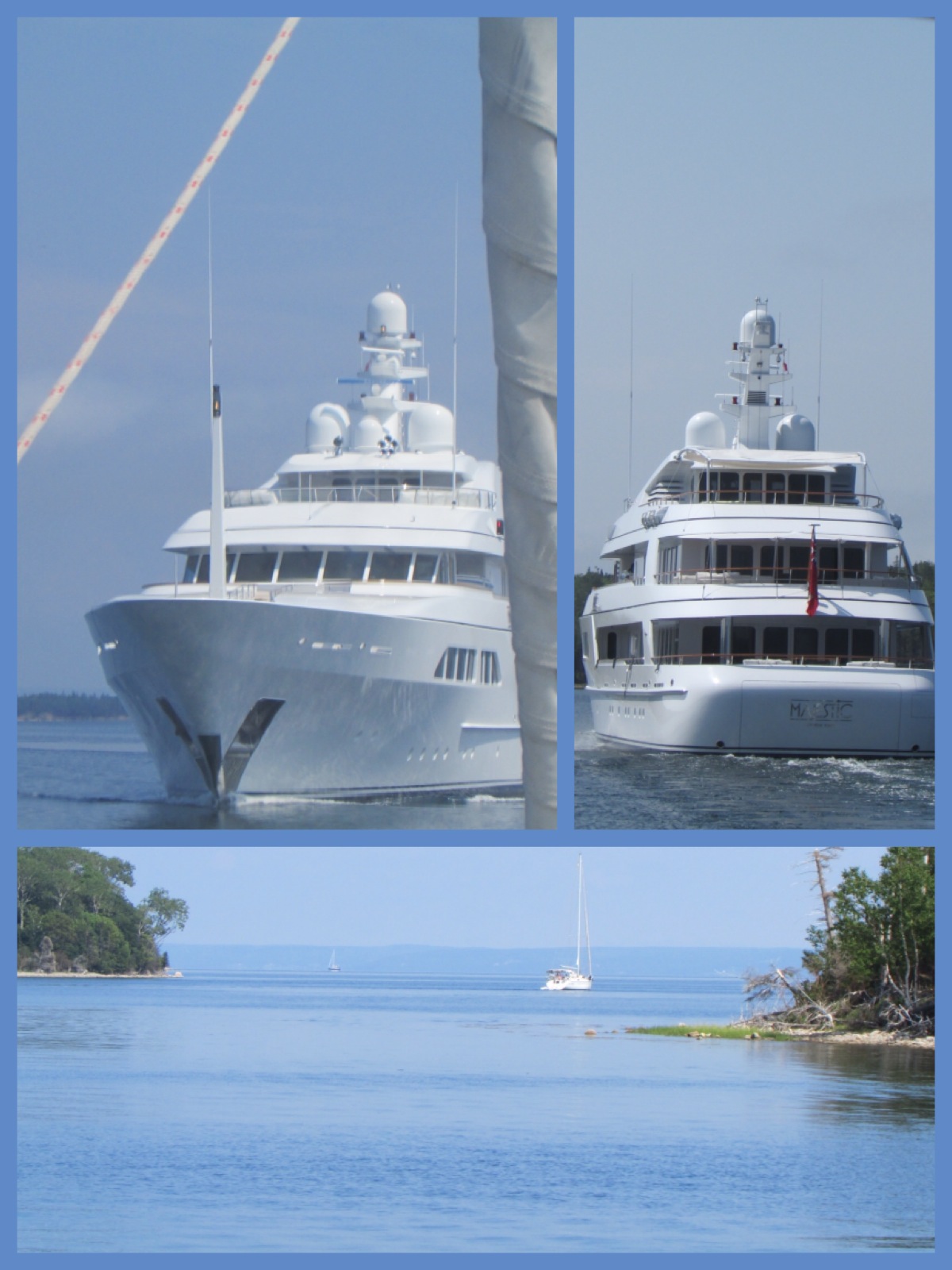 BTW – apparently there is a web cam in Baddeck pointing at the wharf. Too bad we didn’t know that earlier because now we are anchored out in a very nice cove. Great swimming! We will be heading back on Thursday though to pick up Mike, Nadine, Marike and Nevé for a sail and swim. They are on their east coast tour for a couple of weeks.