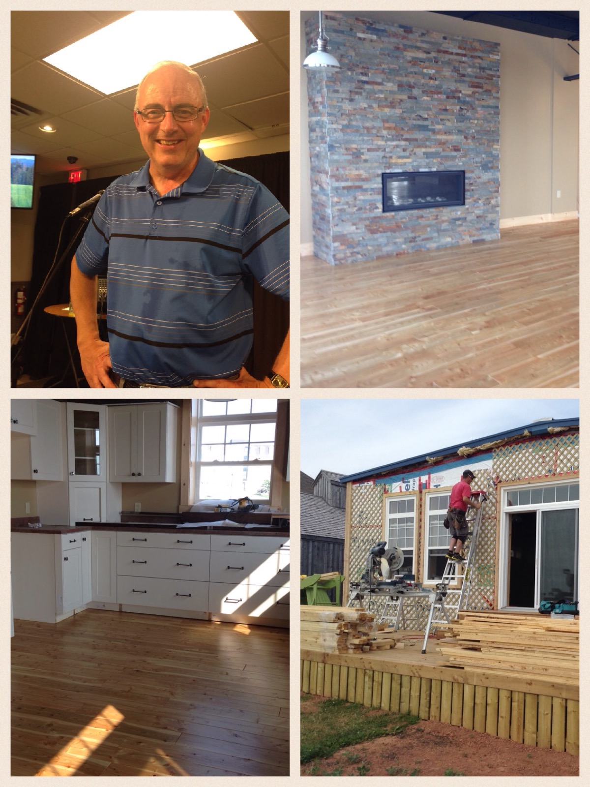 On Friday night, we went to our first PEI ceilidh at the Emerald Boxcar Pub and Grill. The reason we went was because of John Webster. He plays guitar in the band and we know him because of his day job. He works at Royalty Hardwoods and this is where we bought a lot of our wood. We bought the tamarack flooring as well as the white cedar siding and the butcher block top for the island.