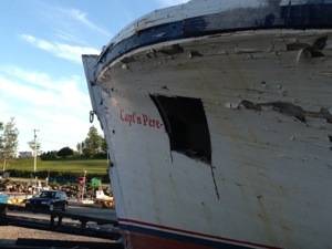 After we passed the rock, we headed toward L’Anse-à-Beaufils. Suddenly, we were in some turbulent water and had a few good smashes around, but this quickly subsided and we made it safely to the entrance of the harbour.