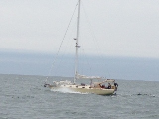 We motored for a while too and then sailed some more throughout the night. We didn’t exactly have “watches” but we did take turns catnapping in the cockpit. Time was very strange – I thought that it would drag on and on – like you’ve been in an airplane forever, but it wasn’t like that at all. Time kept jumping ahead a lot – suddenly it was 2:00 in the morning, then 4:00. Once it started getting light, time seemed to turn back to normal.
