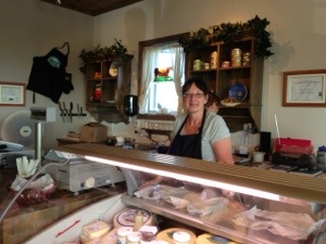 We went to a fromagerie and sampled all sorts of local cheese. Here is a picture of the lady who helped us with the samples.