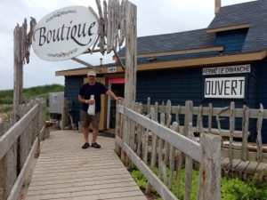 We rented a car for yesterday and today. It was pouring rain and we wanted to see the sights, so our fellow boaters, George and Alison are splitting the cost of the vehicle. We toured the bottom half of the islands and went to Havre Aubert. There is a long sand dune there as well as a small community that has some artisan stores, a museum and aquarium. The sun came out and the colours were beautiful. We saw people kite-surfing – this would be an excellent place to do this as the water is not deep in the lagoons and has a sandy bottom.