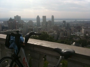 We eventually got to the bottom of Mount Royal and were going to turn our bikes in and walk up to the top but the station was full of bikes. This was a good thing because it is a long way up! We drove and drove up the mountain (hill?) and it just about did us in as the Bixi bikes only have three gears and probably aren’t made for hills! We finally reached the top of Mount Royal and were glad that we got to the top as the view is spectacular. I am including a picture of the Bixi bike just to prove that we did this.