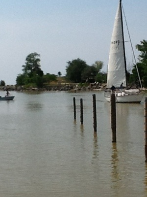 We headed down the St. Clair River to the Sarnia Bay Marina, called them on the radio (they actually answered) and proceeded to our slip. We both just about had heart attacks when the depth meter read 3 foot 6 (our boat has a a five foot keel). Dennis kept plowing through though and I held on tight in case of a sudden stop (there are no seatbelts available!). We made it in safely and realized that the weeds were causing the depth meter to read the such shallow depths.