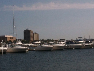 We headed down the St. Clair River to the Sarnia Bay Marina, called them on the radio (they actually answered) and proceeded to our slip. We both just about had heart attacks when the depth meter read 3 foot 6 (our boat has a a five foot keel). Dennis kept plowing through though and I held on tight in case of a sudden stop (there are no seatbelts available!). We made it in safely and realized that the weeds were causing the depth meter to read the such shallow depths.