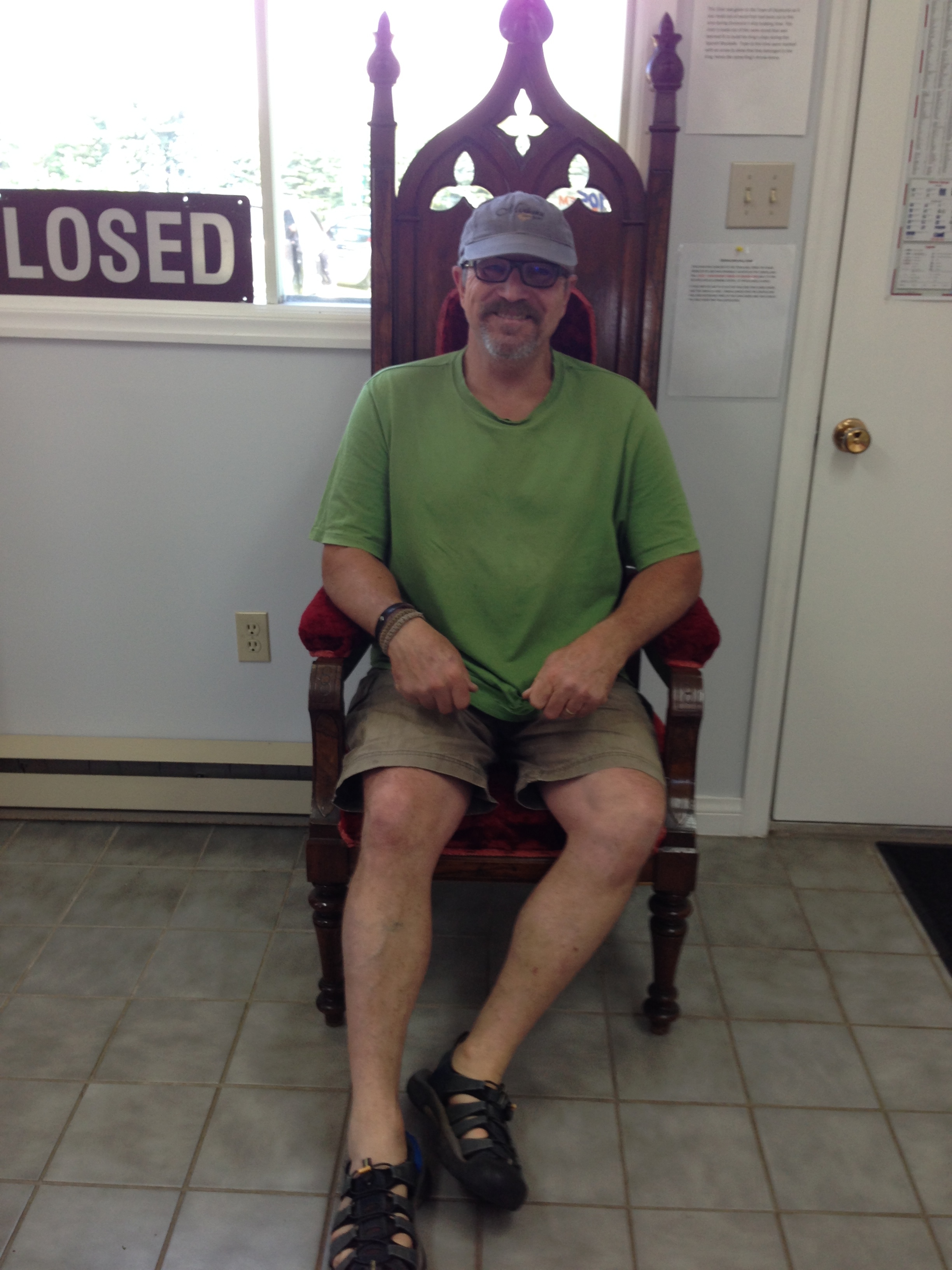 The ride was uneventful – we stopped at the Information booth in Oromocto, New Brunswick and I got a picture of “Joffrey” on his throne.